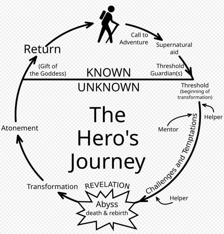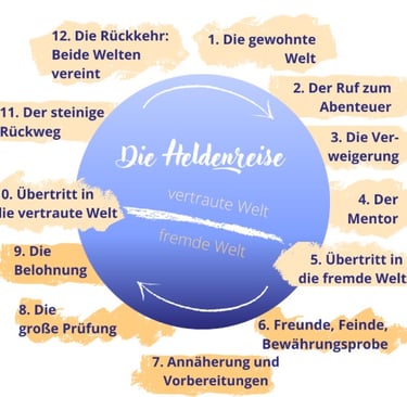 Nach Joseph Campbell können wir jedes Leben, jeden Lebensabschnitt und jedes Problem als eine "Heldenreise" bzw. als eine ganz besondere Herausforderung verstehen, nämlich: den inneren Helden zu entdecken, der das Abenteuer annimmt und meistert.