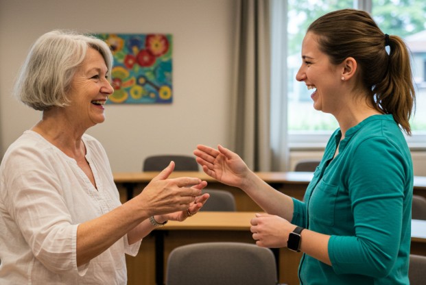 Mit vielen witzigen Übungen aus dem Lachyoga. Denn: Wir haben in Deutschland nicht nur ein Fachkräfte-Mangel, sondern auch ein Lachkräfte-Mangel.